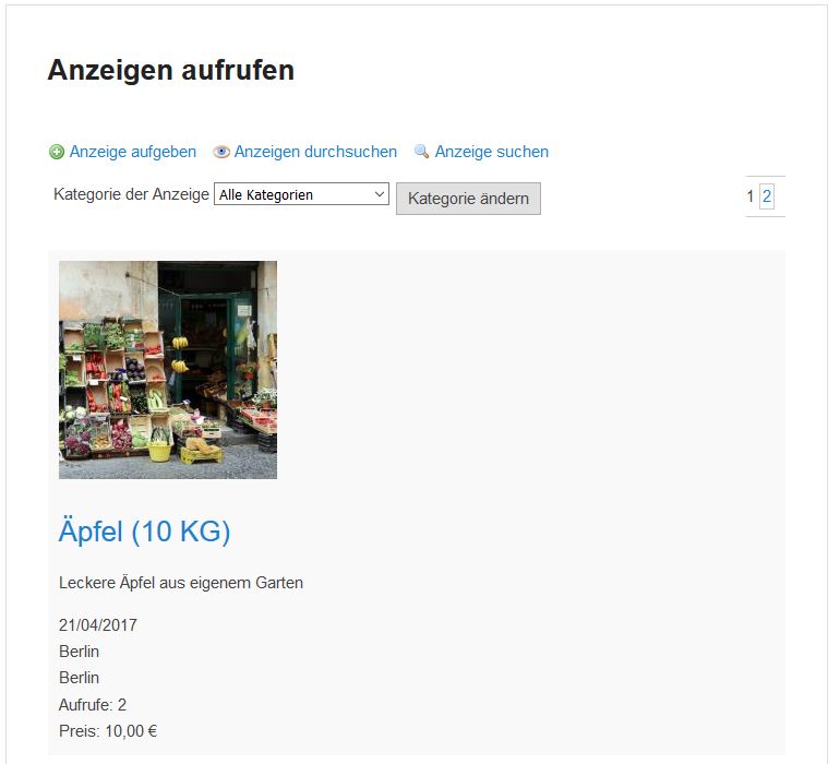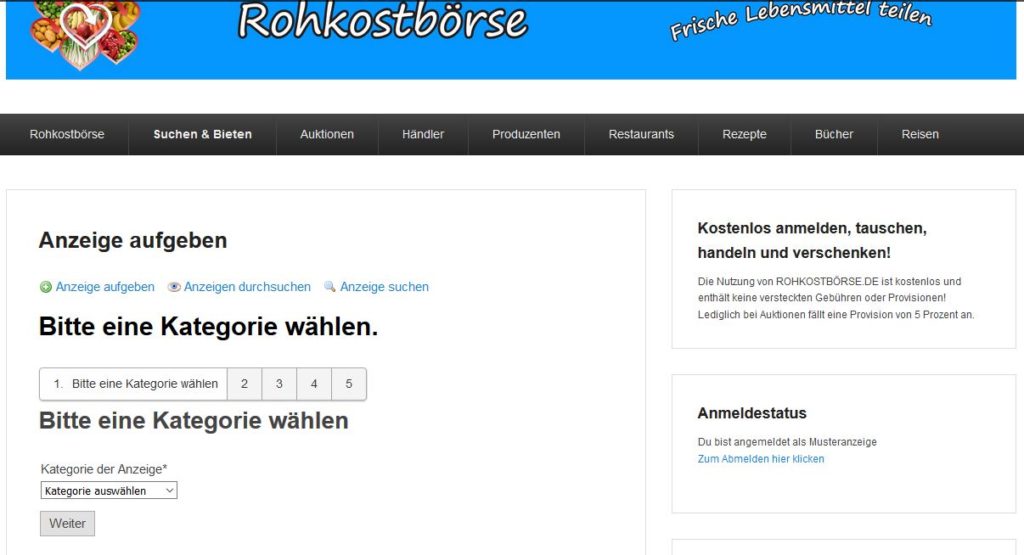 - Kategorie auswählen (z. B. „Suche Obst“ bzw. „Biete Obst“