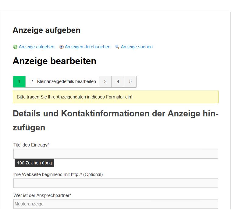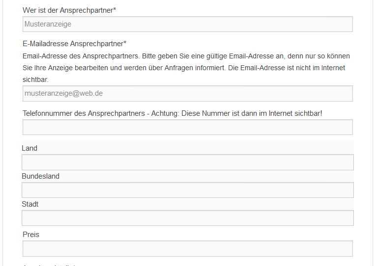 - Tragen Sie nun die Produkt- und Kontaktdaten in das Anzeigenformular ein