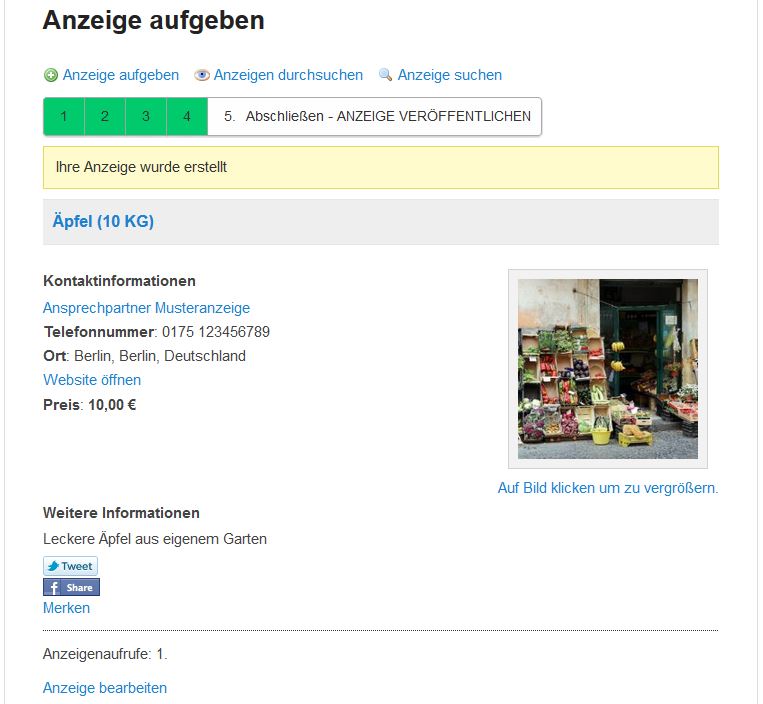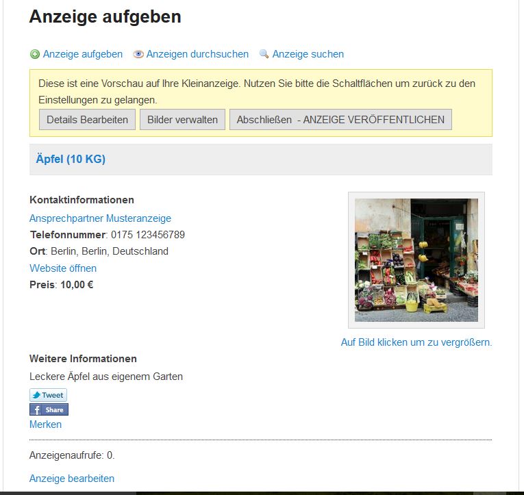 - Ihre Anzeige wird Ihnen nun in Veröffentlichungsansicht dargestellt