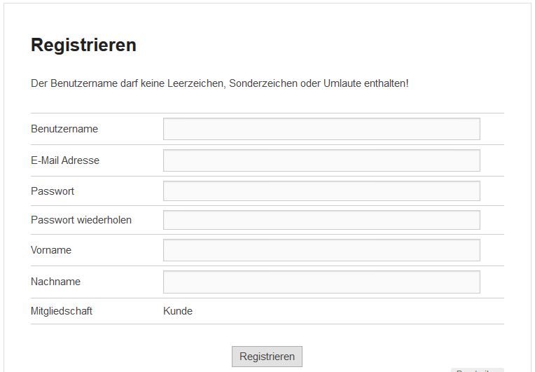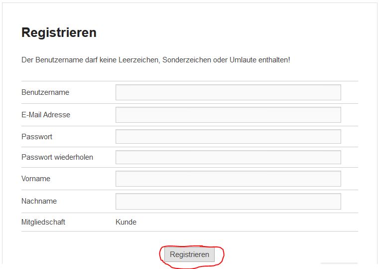 - „Registrieren“-Formular ausfüllen. Bitte beachten, dass der Benutzername keine Leerzeichen und Umlaute enthalten darf!!!!